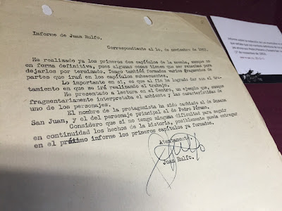 En este otro informe, fechado el 1 de noviembre de 1953, Rulfo afirma que ha terminado los dos primeros capítulos de su novela, aunque aclara que no van a ser los textos definitivos e informa que el nombre de sus protagonistas ha cambiado a los de Susana San Juan y Pedro Páramo.